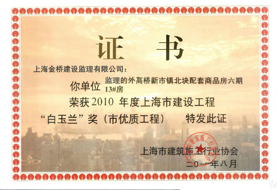 外高桥新市镇北块商品房13#房获“白玉兰”奖