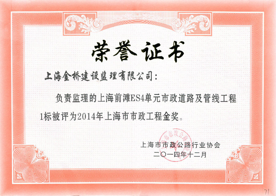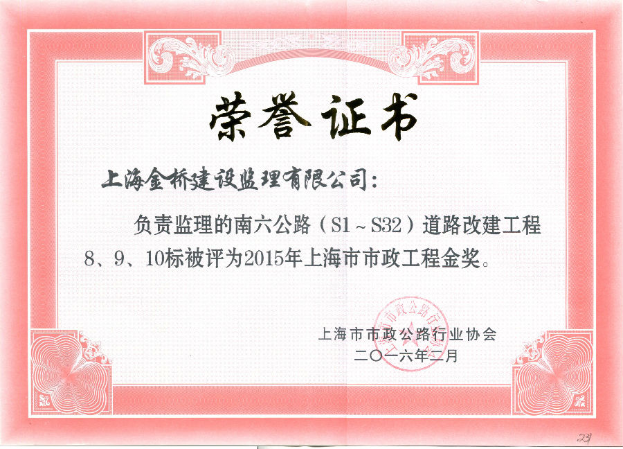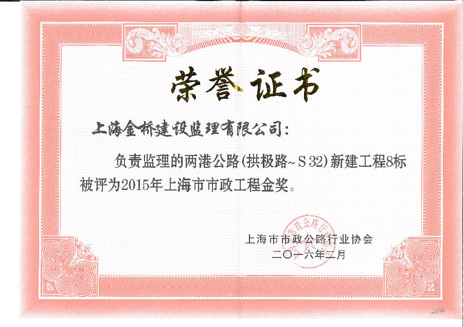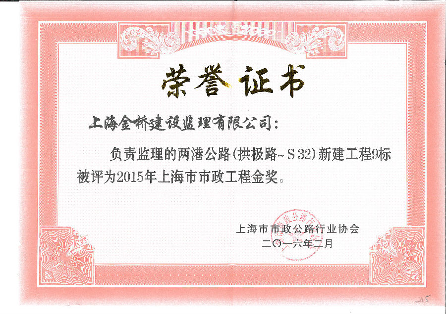 两港公路9标获上海市市政工程金奖