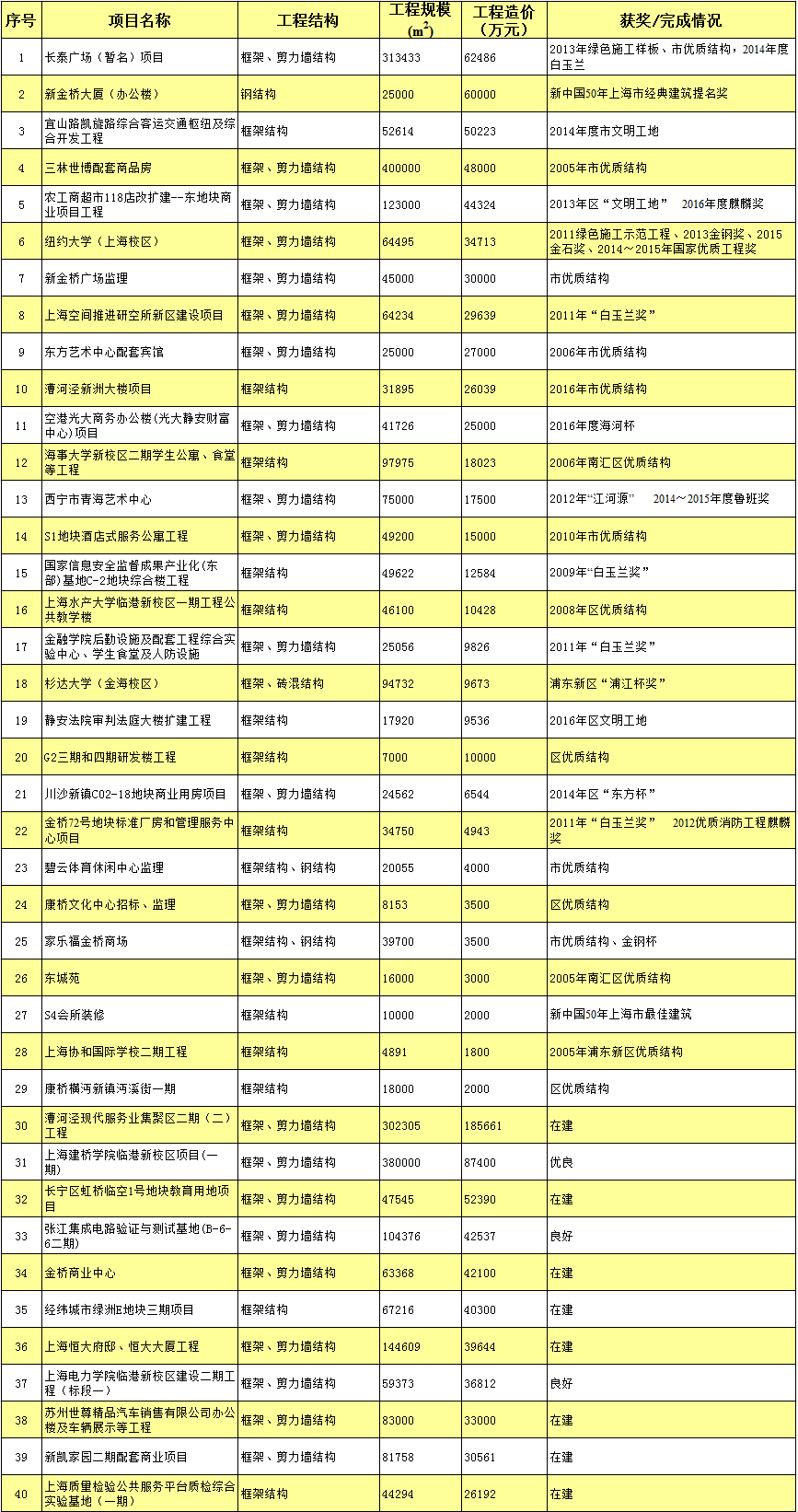 部分公共建筑监理项目业绩一览表