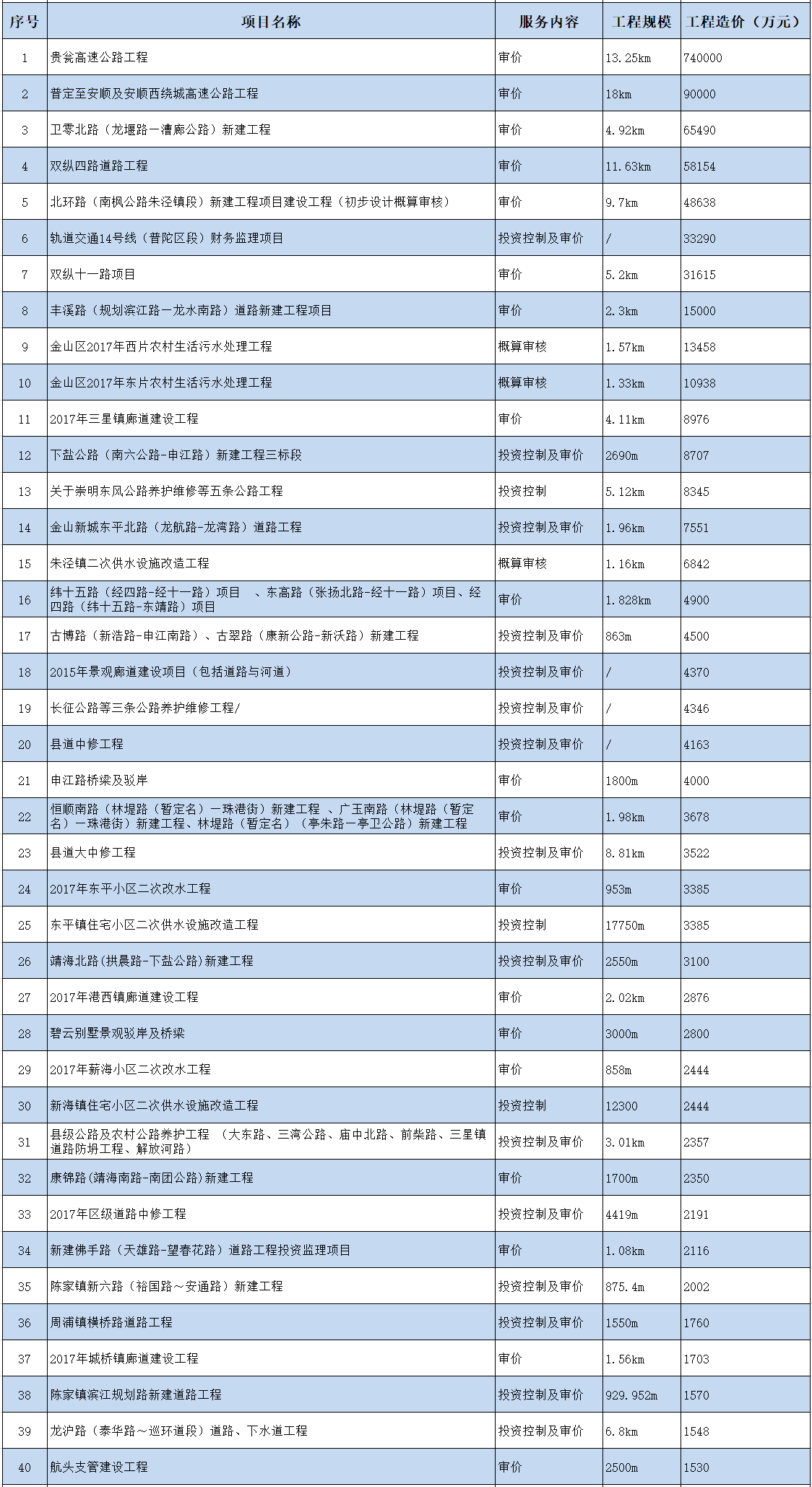 部分市政工程造价咨询业绩一览表