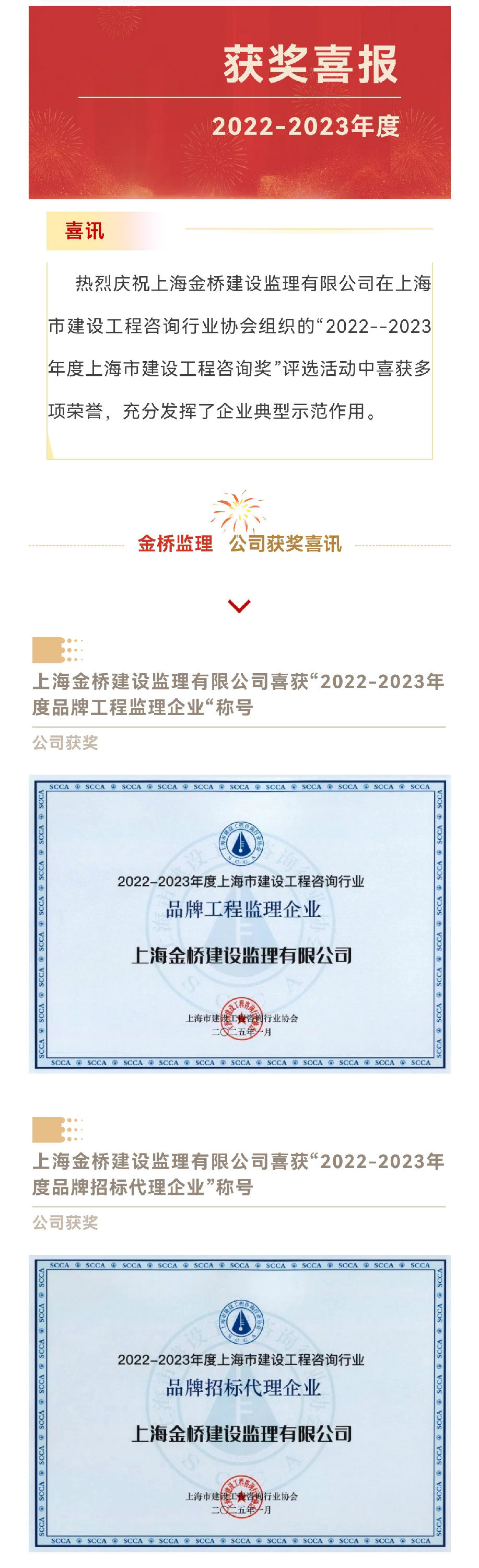 喜报 | 上海金桥监理荣获“2022-2023年度上海市建设工程咨询行业选树活动”多项荣誉